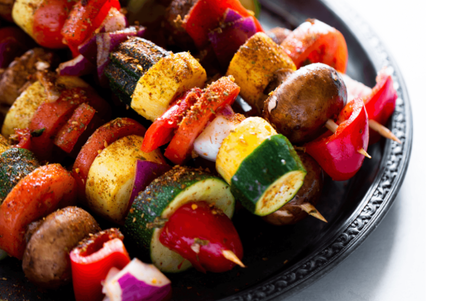 3 PALOS DE BROCHETA VEGETARIANA MIX DE VERDURAS CON HONGOS